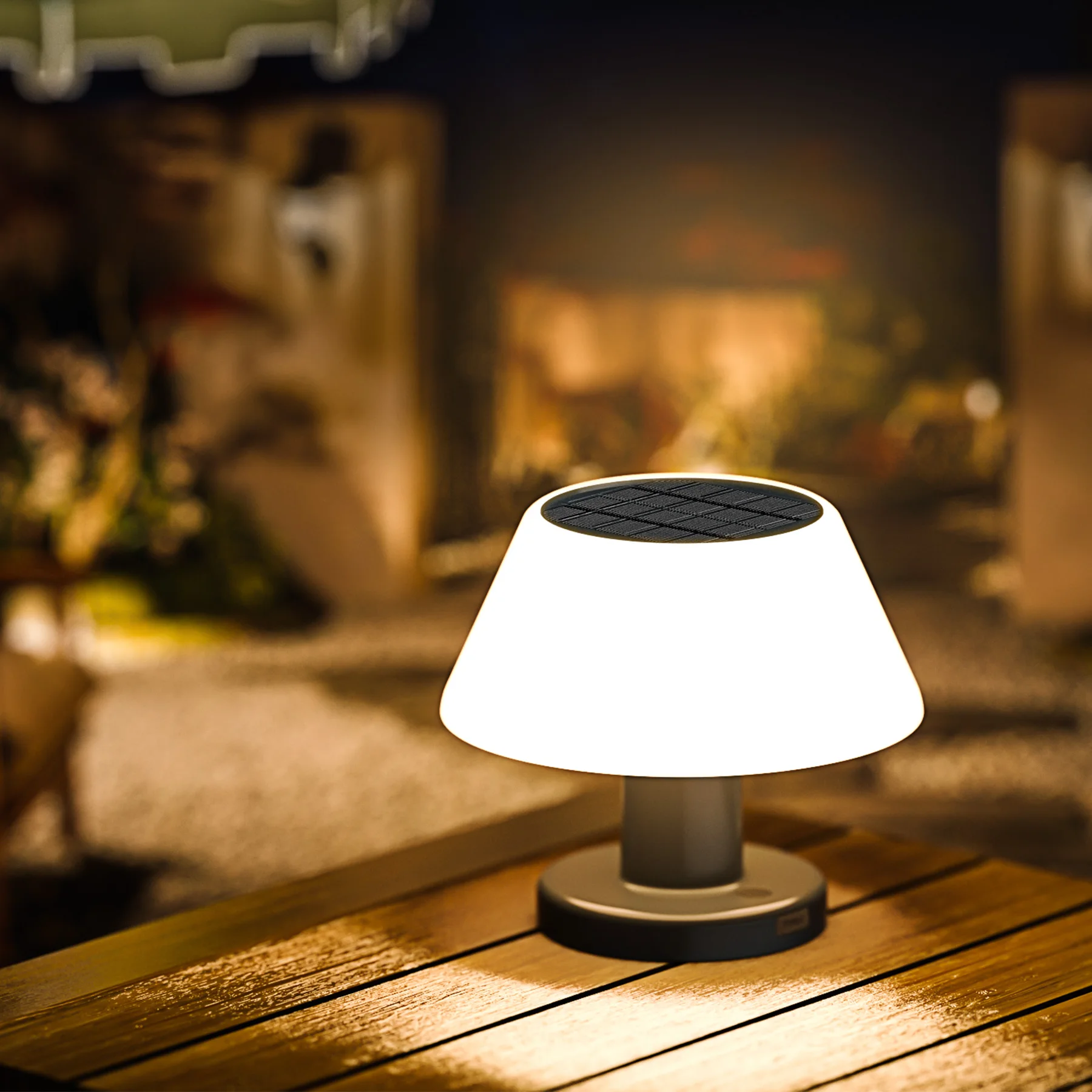 Bring a warm, inviting glow to both your outdoor evenings and indoor spaces with the LunaGlow Solar Dimmable Table Lamp, designed for cozy ambiance, modern décor, and effortless everyday use. Equipped with dual charging (solar + USB-C), this sleek lamp provides flexible lighting wherever you need it—your terrace, balcony, garden table, bedside, or living room.